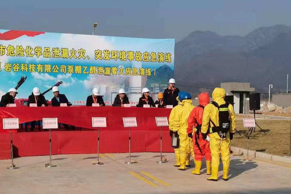 2020年12月21日,義烏市危險化學品泄露火災事故應急演練在浙江巖谷科技有限公司廠區舉行。演練圍繞事故報告、疏散撤離醫療救護、?;房刂?、消防救援等內容展開。演練旨在檢驗常態下,各單位應急響應能力、應急準備能力、應急處置能力,探索新形勢下應急指揮和聯動處置的實現機制。